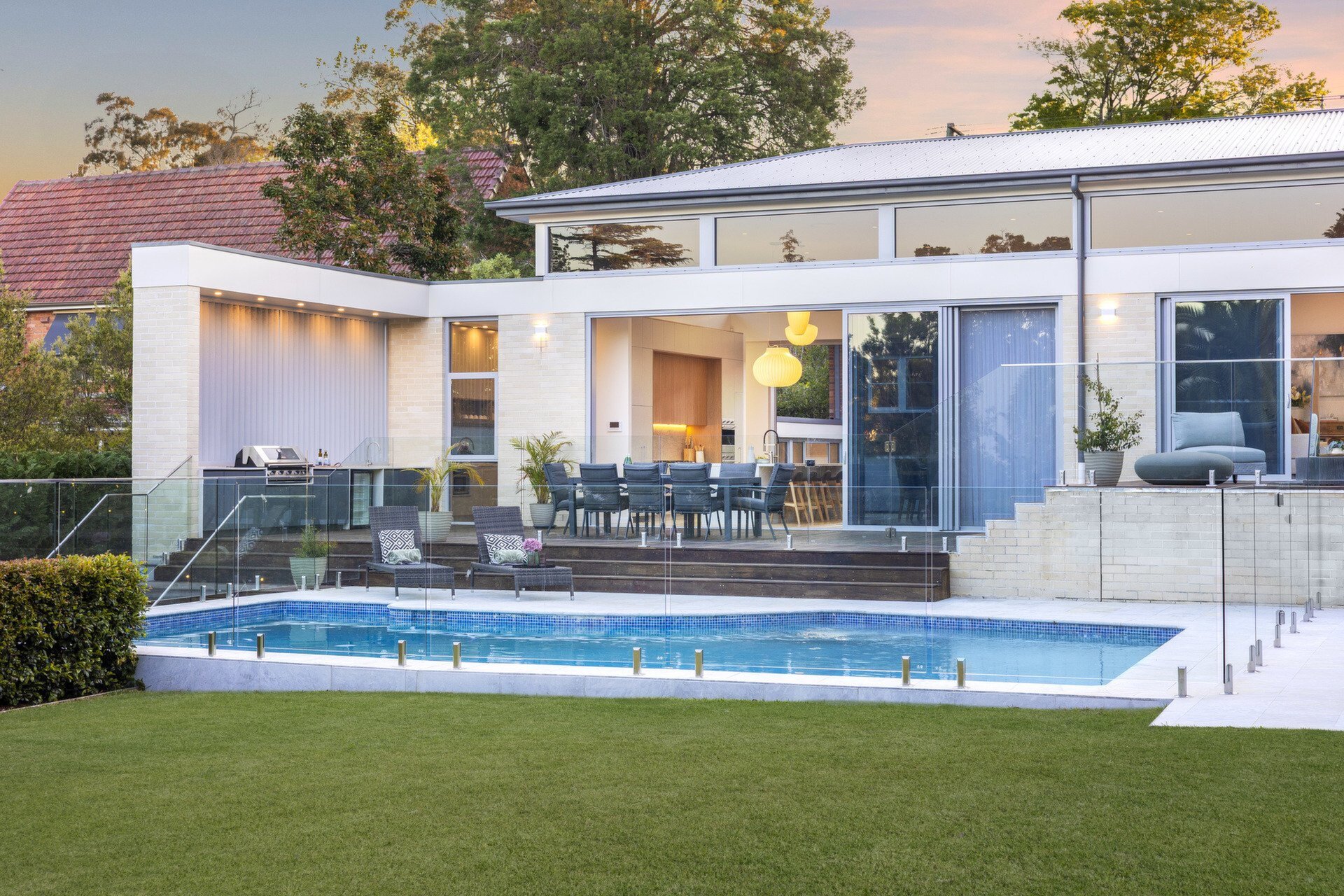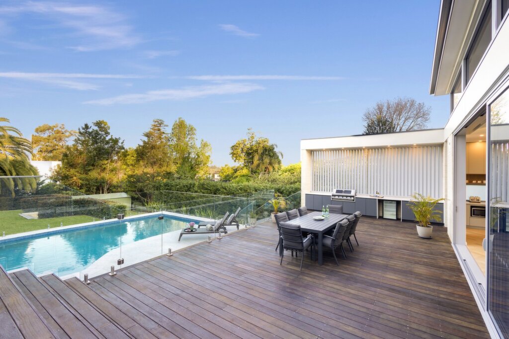 Architectural transformation blending heritage charm with modern design Expansive living and dining zones with soaring ceilings and abundant light Full-height stacker doors flow to hardwood entertaining terraces Resort-style pool, cabana with ensuite and kitchenette, and manicured lawns Luxe marble kitchen with butler's pantry and premium Smeg appliances Five generous bedrooms including a deluxe master retreat with ensuite Three additional ensuites, powder room, and custom wine cellar Herringbone flooring, ducted air conditioning, and bespoke cabinetry Built-in barbecue, landscaped gardens, and triple automatic garageLifestyle & Location