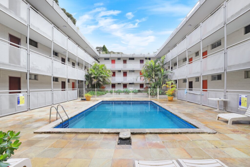 Renovated kitchenette & living area Fully-tiled bathroom with shower. Shared laundry with washing machine and dryers. Security entry, lift access and own entrance door off the gallery-style balcony - Overlooking central gardens with pool. Security car space. Perfect for singles, or as a City pad for those working in Chatswood, the North Shore or the City.